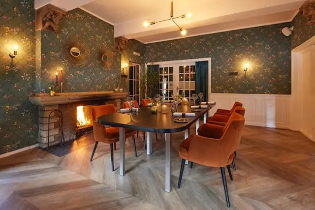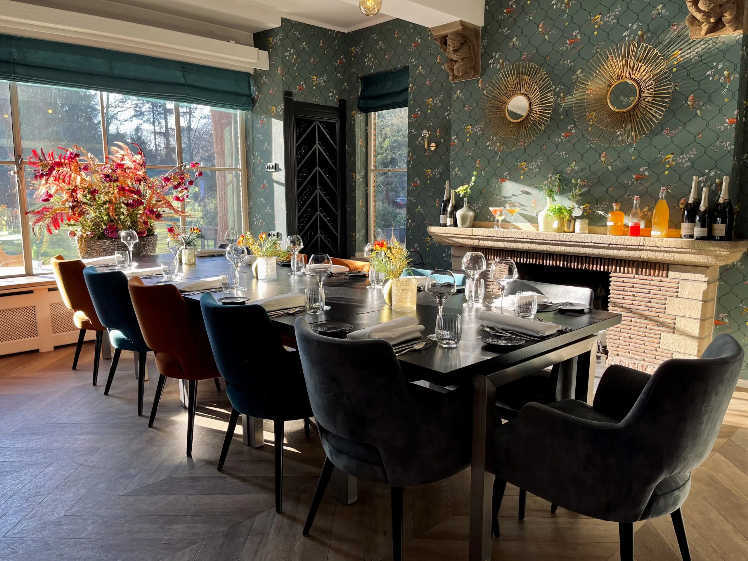 De Haardkamer is een intieme ruimte vol karakter. De originele open haard vormt het warme hart van de kamer, omringd door klassieke details en grote ramen met uitzicht op de tuin. Deze sfeervolle ruimte is ideaal voor vergaderingen, kleinschalige diners, borrels of private dining in huiselijke stijl.