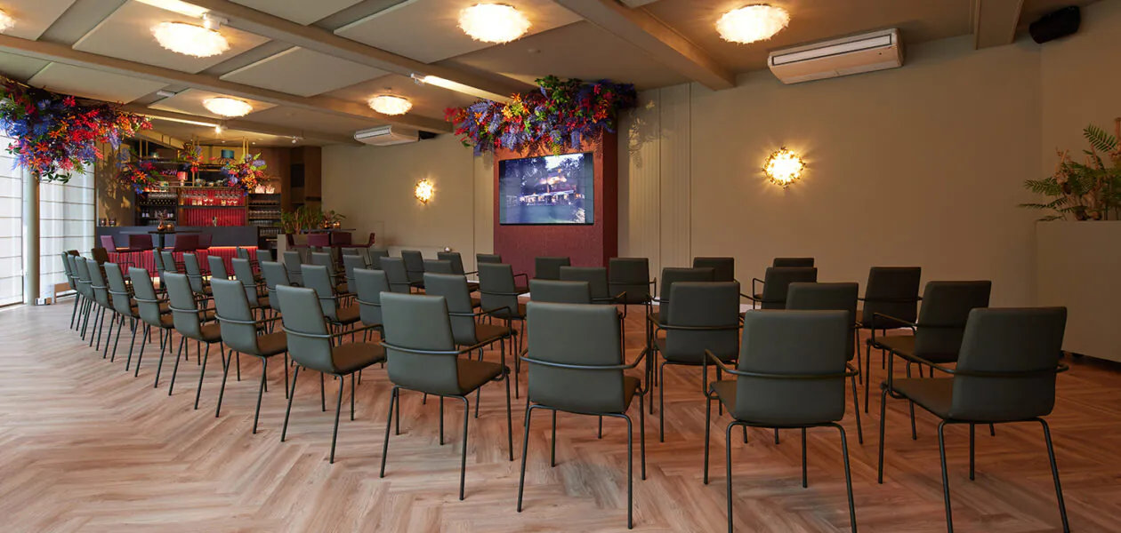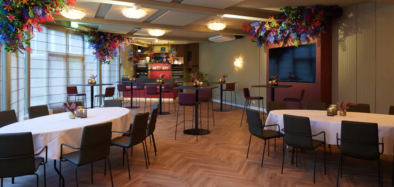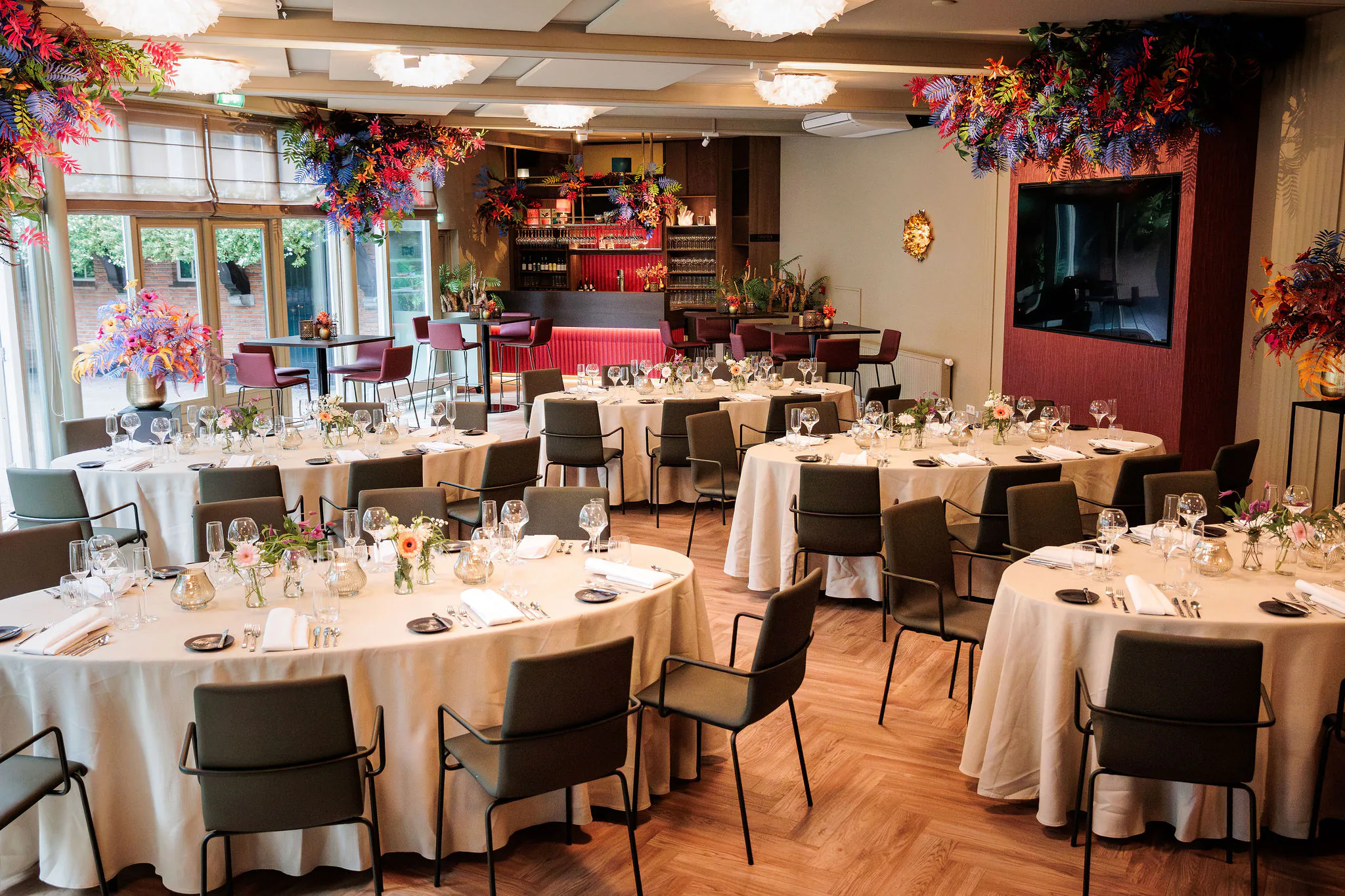 De Tuinkamer is de grootste en meest veelzijdige ruimte van Auberge du Bonheur. Recent volledig gerestyled, met een modern en kleurrijk interieur dat perfect aansluit bij de landelijke sfeer van het landhuis. De zaal beschikt over een eigen bar, privétoiletruimte en openslaande deuren naar een knus terras met uitzicht op de tuin. Een stijlvolle locatie voor diners, ceremonies of feestavonden midden in het groen van Tilburg.
